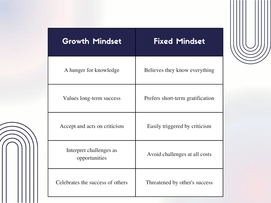 People with a growth mindset constantly seize opportunities to improve themselves, whereas those with a fixed mindset lean toward familiarity, with their minds often set in stone.